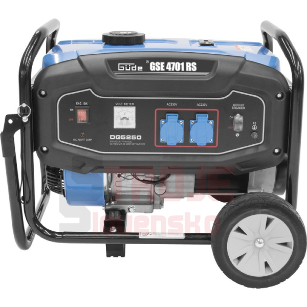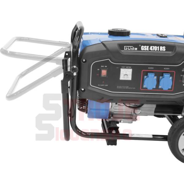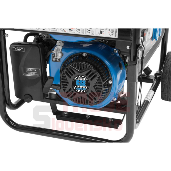 Elektrocentrála so 4-taktným synchrónnym generátorom, AVR (automatická regulácia napätia pre stabilný výkon), 2 x Schuko 230 V / 50 Hz, skladacia transportná rukoväť pre úsporu miesta pri skladovaní, podvozok s veľkými kolesami pre ľahké premiestňovanie, reverzný štartér. Ochrana proti preťaženiu, ochrana pri nízkej hladine oleja, voltmeter. Tento generátor nie je vhodný na prevádzku elektronicky citlivých prístrojov, ako sú notebooky, smartfóny alebo zvukové systémy.