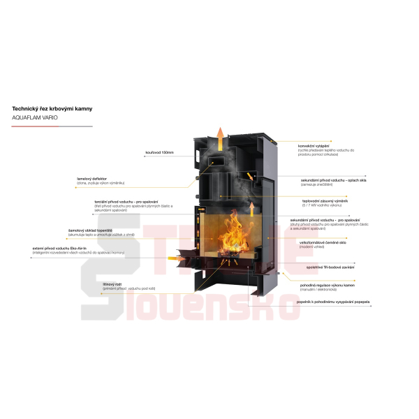 Typ kamen: teplovodní, dvouplášťová, konvekční