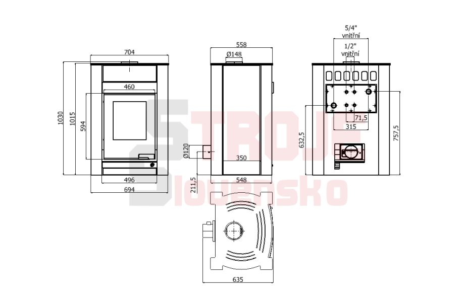 Typ kamen: teplovodní, dvouplášťová, konvekční