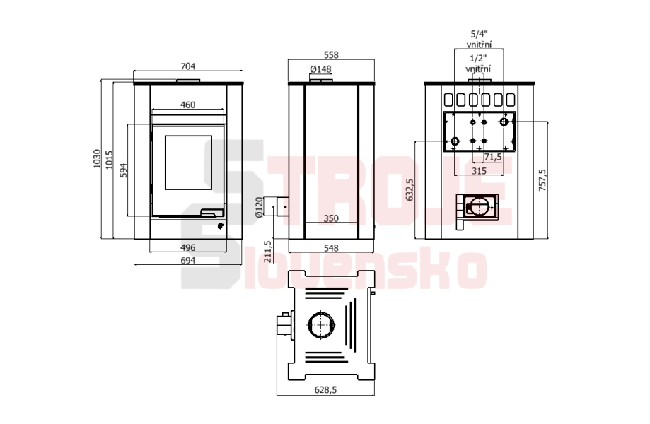 Typ kamen: teplovodní, dvouplášťová, konvekční
