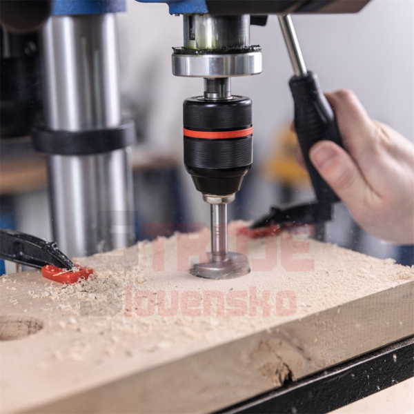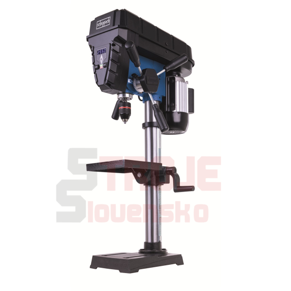 Rychloupínací sklíčidlo s ložisky pojme vrtáky od 1,5 do 13 mm a nastavitelný doraz hloubky zajistí konzistentní výsledky i při sériovém vrtání. Výkyv 125 mm dovoluje vrtat obrobky o průměru až 250 mm. Vrtačka má pevnou základnu pro bezpečné uchycení ke stolu a ergonomická pogumovaná rukojeť zajišťuje komfortní ovládání i při delší práci.