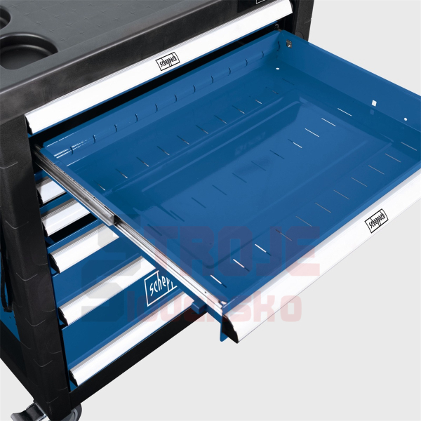 Rozměry vozíku jsou 775 × 470 × 975 mm, přičemž jeho nosnost činí až 450 kg a hmotnost v základu přibližně 59 kg. Je vybaven 7 prostornými zásuvkami různých výšek (58, 128 a 195 mm) s hloubkou 391 mm, které lze plně vysunout, takže máte ke všemu nářadí snadný přístup.