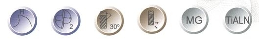 Počet britov: 2 Uhol skrutkovice: 30 ° Povlakovanie: TiAlN